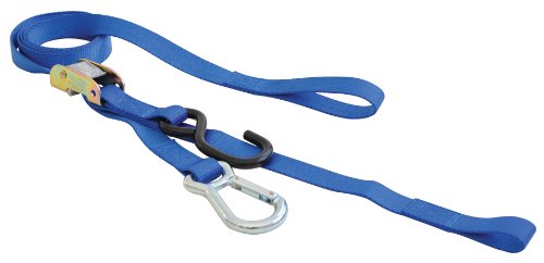 High roller cam lock tie downs is a patent pending heavy-duty carabiner style base hooks with a non-slip rubber coated handlebar S hooks. 72 inches x 1 inch aircraft quality nylon straps with 1200 pounds straight tension strength. This has convenient end loop for easier tightening. This is ratcheting type buckles. This product is available in red, blue or black. These are sold in pairs.