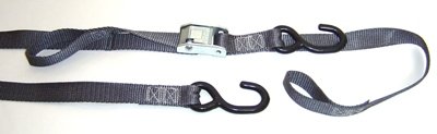 This durable, 1-inch Handlebar Cam Strap with Soft Loops from US Cargo Control is a unique tie down strap that works great for any light duty application such as hauling motorcycles, snowmobiles, 4-wheelers, etc. Cam buckles use a pull-to-tighten system rather than the crank-to-tighten features seen in ratchets. This is a critical feature when securing precious cargo, because over-tightening your load with a ratchet can damage delicate items. The black, industrial grade polyester webbing is 6 feet long and will not stretch over time. The end fittings on this strap are vinyl coated S-hooks, which will not scratch your cargo like a bare wire hook. The high strength polyester makes this strap highly resistant to weathering, corrosion, and other damage. INSTRUCTIONS: Wrap one of the soft loops around the base of the left handle bar. Put one of the hooks through the soft loop. Affix the other hook end of the strap to a secure spot on the floor. Grab the other loop and pull through the cam buckle to tighten, taking up any slack. Do the same thing on the right side. (You will need 2 of these straps).